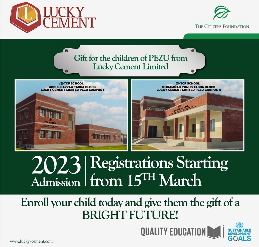 Karachi: Lucky Cement Limited has announced the successful completion of their project to build two schools in collaboration with The Citizen Foundation. The Abdul Razzak Tabba Block Lucky Cement Limited Pezu Campus-I will provide primary education, while the Muhammad Yunus Tabba Block Pezu Campus-II will provide secondary education. This project is in line with the UNSDG “Quality Education” and aims to provide access to quality education to children in the community.