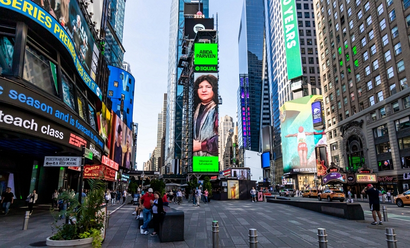 Karachi: Legendary Sufi singer Abida Parveen has been proudly featured by Spotify on a digital billboard at Times Square, New York, as not only the EQUAL Pakistan Ambassador of August, but also as the EQUAL Global ambassador marking a significant moment for South Asian representation on the global stage.