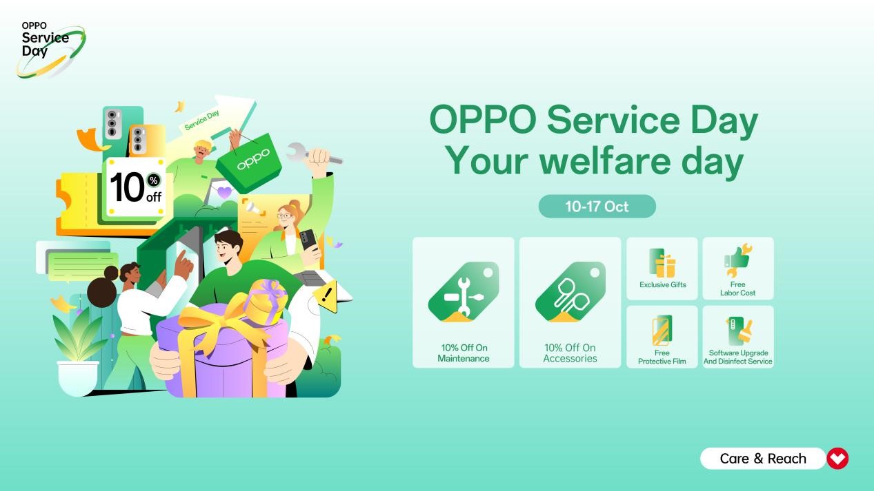 We want you to know that all OPPO products come with a competent and reliable after-sales service. Let’s have a look at the illustrations below to better understand the service day benefits, running from October 10 to October 17 this month, along with professional guidance and other features!”