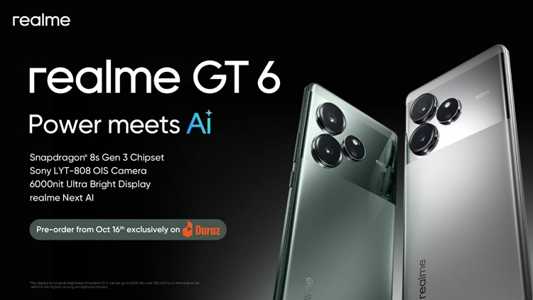 realme, the world’s fastest-growing smartphone brand, is proud to announce the exclusive launch of its latest flagship device, the realme GT 6, on Daraz.pk. Pre-orders will begin on October 16, and the highly anticipated devices will be available for purchase starting October 19 at a price of PKR 149,999/-. The realme GT 6 features a Nano-Mirror back cover that blends sleek metallic finishes with a modern, reflective texture. Fans will have the option of choosing between Fluid Silver and Razor Green colors.