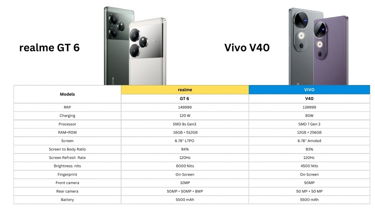 | realme GT6 | Vivo V40 | |