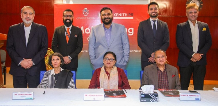 The MoU signing was officiated by Vice Chancellor of Greenwich University, Dr. Seema Mughal, President of Management Association of Pakistan, Senator Sarmad Ali and Chairperson of Xenith PR, Zainab Ansari.