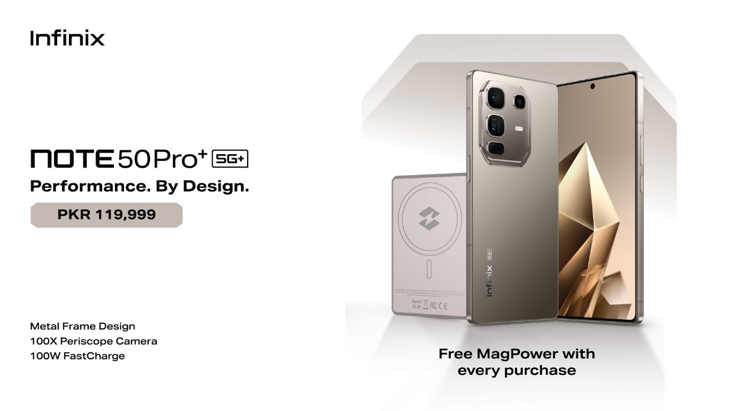 Lahore: Infinix, the leading smartphone brand in Pakistan, has officially launched its NOTE 50 Pro+ 5G which uniquely blends metal craftsmanship with innovative AI features, 100X periscope camera and extraordinary charging capabilities. Priced at PKR 119,999 the NOTE 50 Pro+ 5G is now available nationwide and online on X-park with free MagPower with every purchase.