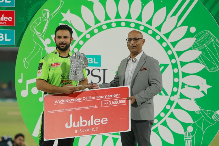 In a proud moment during the HBL PSL-X closing ceremony, Javed Ahmed, Managing Director and CEO of Jubilee Life Insurance, presented the Wicket-keeper of the Tournament award to Muhammad Haris of Peshawar Zalmi. Since Haris couldn’t attend the ceremony, the award was graciously received on his behalf by teammate Muhammad Akhlaq after the thrilling final between Lahore Qalandars and Quetta Gladiators at Gaddafi Stadium, Lahore. Haris earned the honor for his outstanding performance behind the stumps and with the bat throughout the season, registering 247 runs and 12 dismissals in 10 matches.