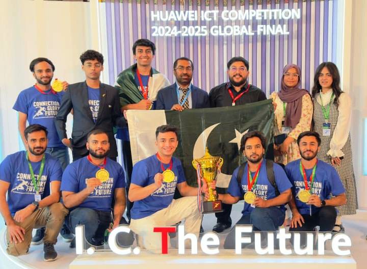 Bringing pride to the nation, a joint team of students from Sindh Agriculture University (SAU), Tandojam, and Mehran University of Engineering and Technology (MUET), Jamshoro, secured third place at the prestigious Huawei Global ICT Competition 2025 held in Shenzhen, China.