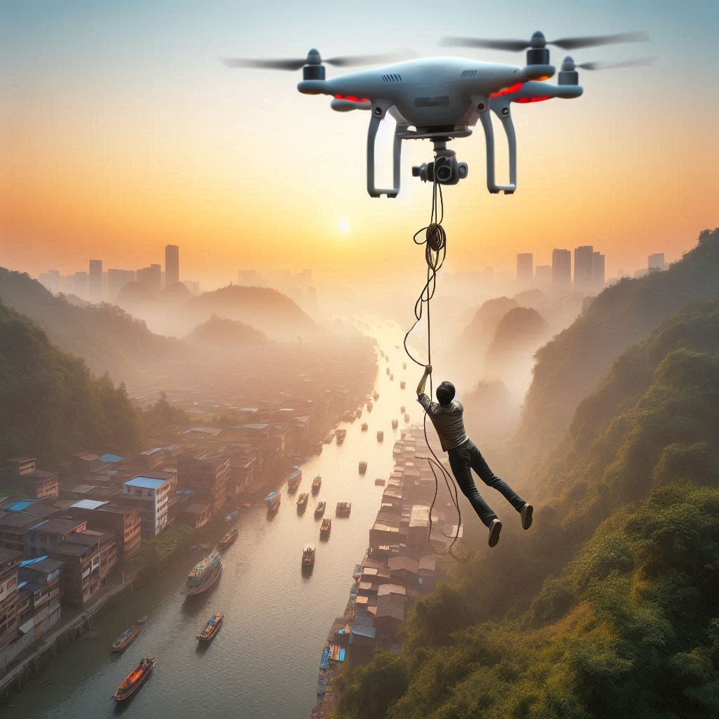 Drone Hero: Chinese Man Rescued from Flooded Rooftop by Makeshift Drone Airlift