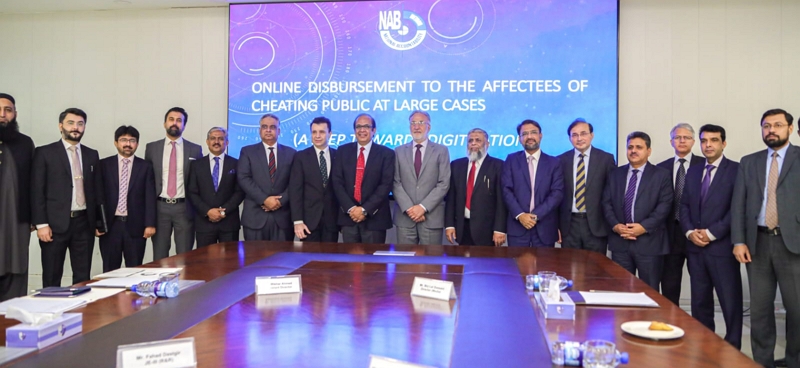 To mark this milestone, a signing ceremony was held at NAB Headquarters, led by Chairman NAB Lt. Gen. Nazir Ahmed (R). The event was also graced by Syed Farooq Hasan, Group Head (A) NBP, along with senior officials from both organizations. During the ceremony, the NAB Chairman initiated the online transfer of funds, directly crediting the bank accounts of the affectees.