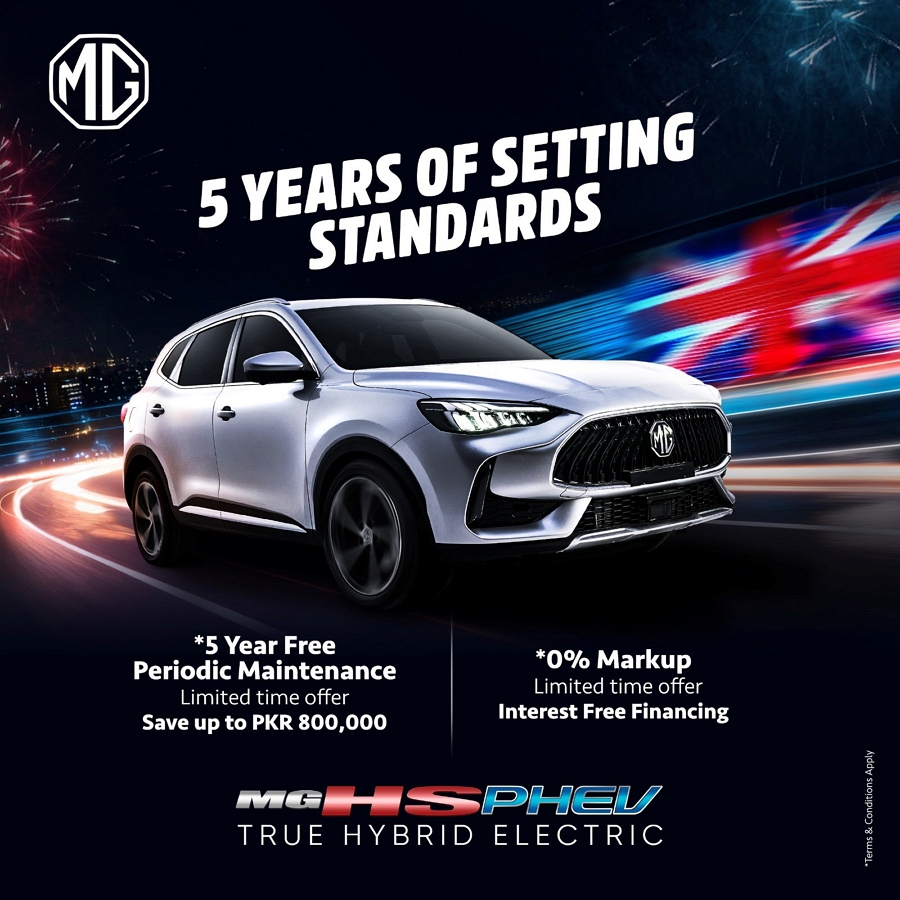 To commemorate this milestone, MG Pakistan has launched its “5 Years of Setting Standards” campaign — a celebration of the brand’s journey and the strong community it has built over the years. As part of this celebration, MG is extending exclusive limited-time offers for its clients, including five years of free periodic maintenance (valued up to PKR 800,000) and 0% markup with interest-free financing on the Pakistan’s first locally assembled PHEV True Hybrid Electric.
