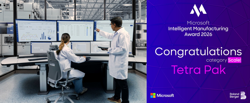 The Microsoft Intelligent Manufacturing Award (MIMA) recognises innovative industrial solutions that drive measurable impact through intelligent manufacturing technologies. Granted by Microsoft and Roland Berger, the award followed a competitive evaluation process. Tetra Pak was shortlisted and presented its solution to an independent jury before being named winner in the Scale! category. Tetra Pak® Factory OS™ will be formally recognised at Hannover Messe on 22 April 2026.